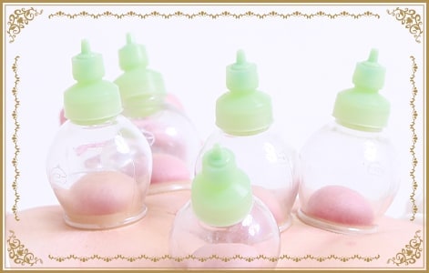お腹や背中、の「経路」に、プラスチック製の容器を置き、カップの中を真空に近い状態にして皮膚に吸着させます。