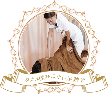 - タオル揉みほぐし(全身裏面)御希望の方はストレッチ 足踏み